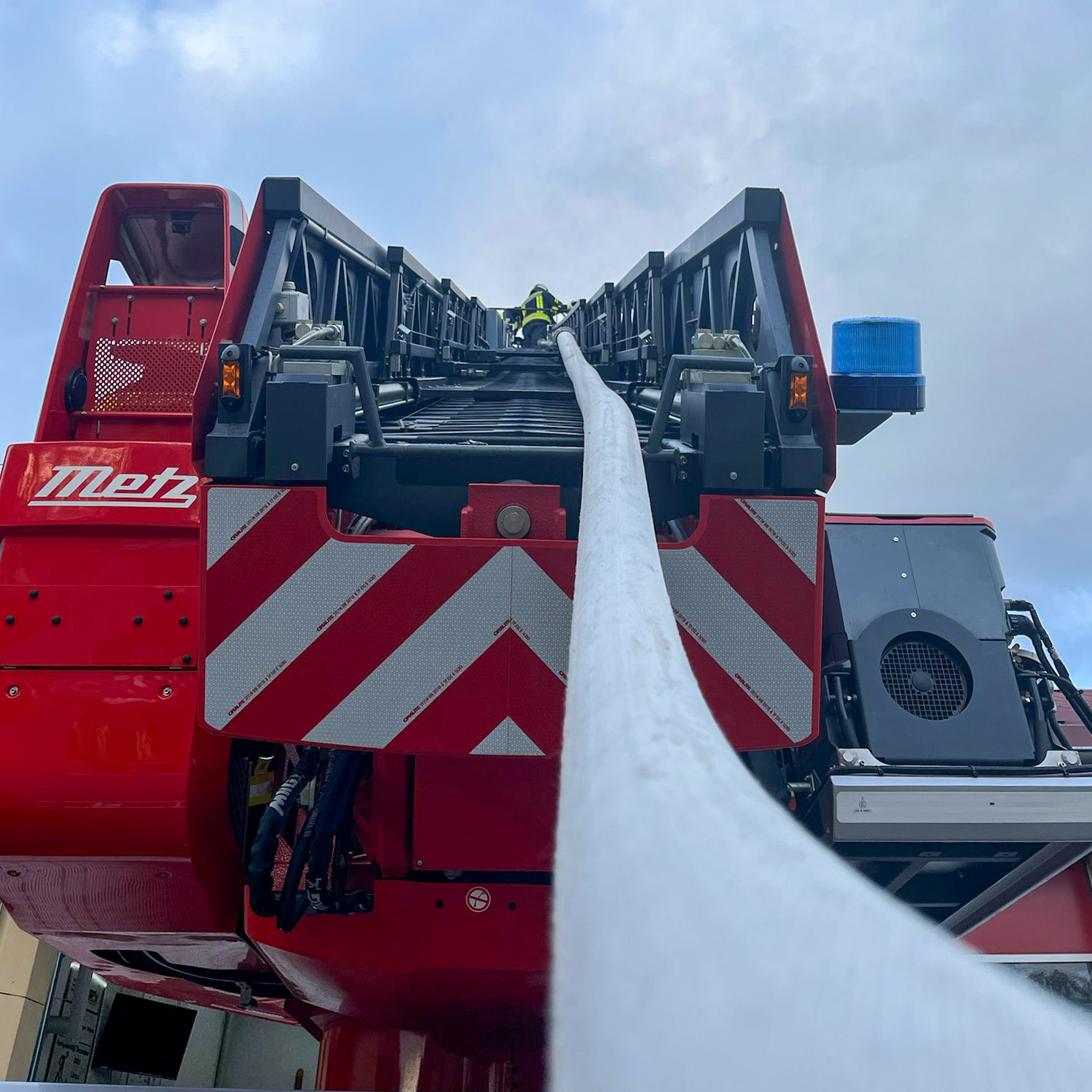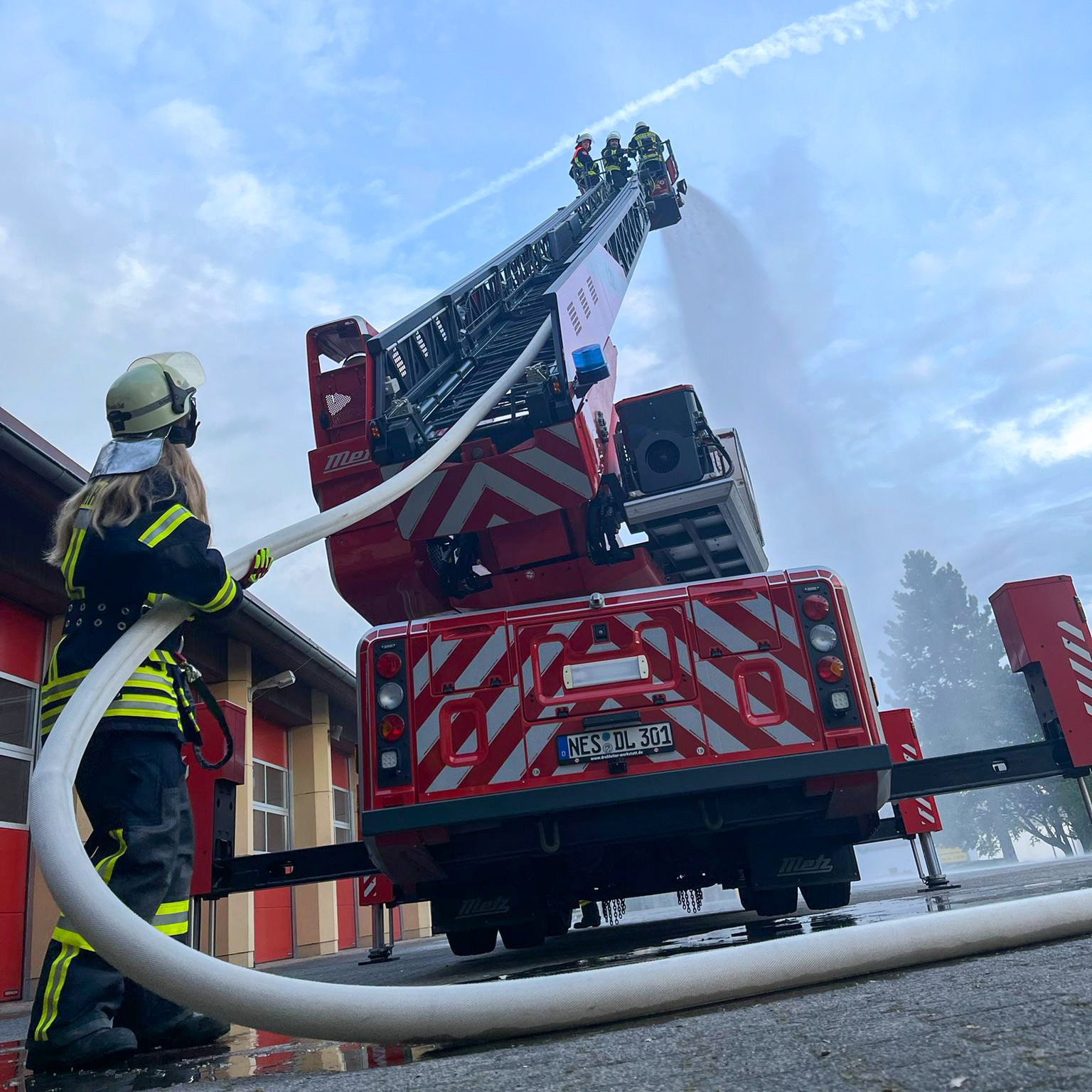 Außerdem wurde mit der Drehleiter geübt. Nachfolgend einige Bilder hiervon.