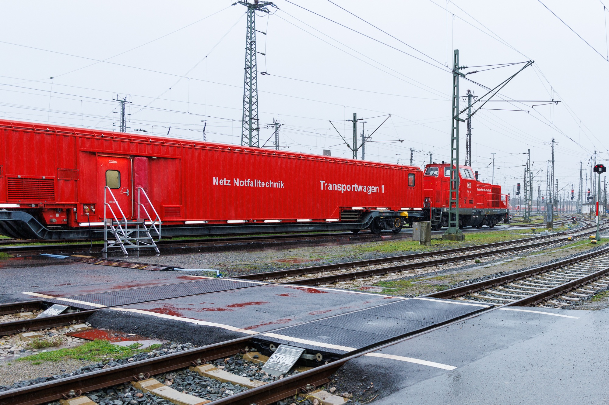 1 Sanitätswagen bilden einen Rettungszug und stehen für schwerwiegende Unglücksfälle im Bahnbetrieb, insbesondere auf den Schnellfahrstrecken Würzburg-Hannover und Mannheim-Stuttgart bereit.