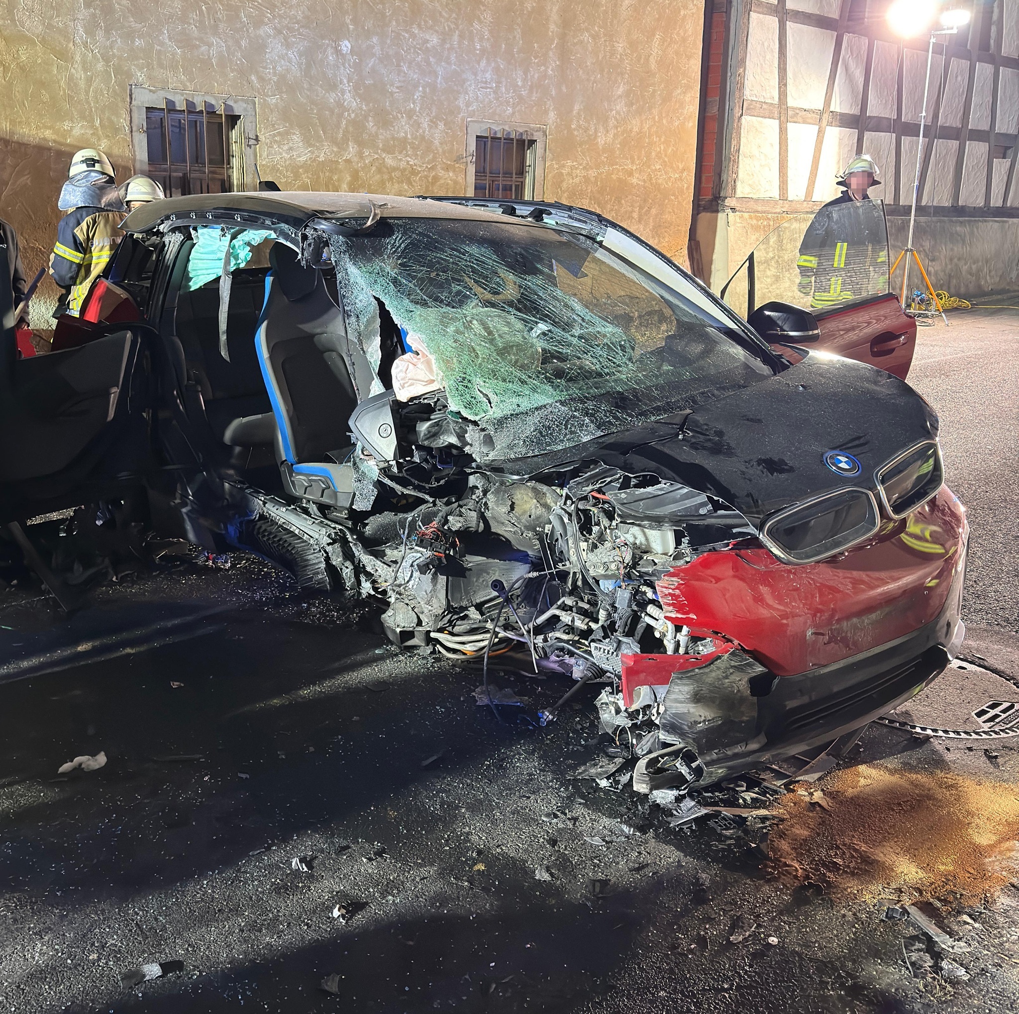 Zunächst wurden wir zu einem ausgelösten eCall-Notruf nach Mittelstreu alarmiert. Bereits beim Ausrücken bestätigte sich der Verkehrsunfall und die Alarmstufe wurde daraufhin erhöht. Vor Ort konnte eine Person mit und eine Person ohne der Hilfe vom hydraulischen Rettungsgerät befreit und an den Rettungsdienst übergeben werden.