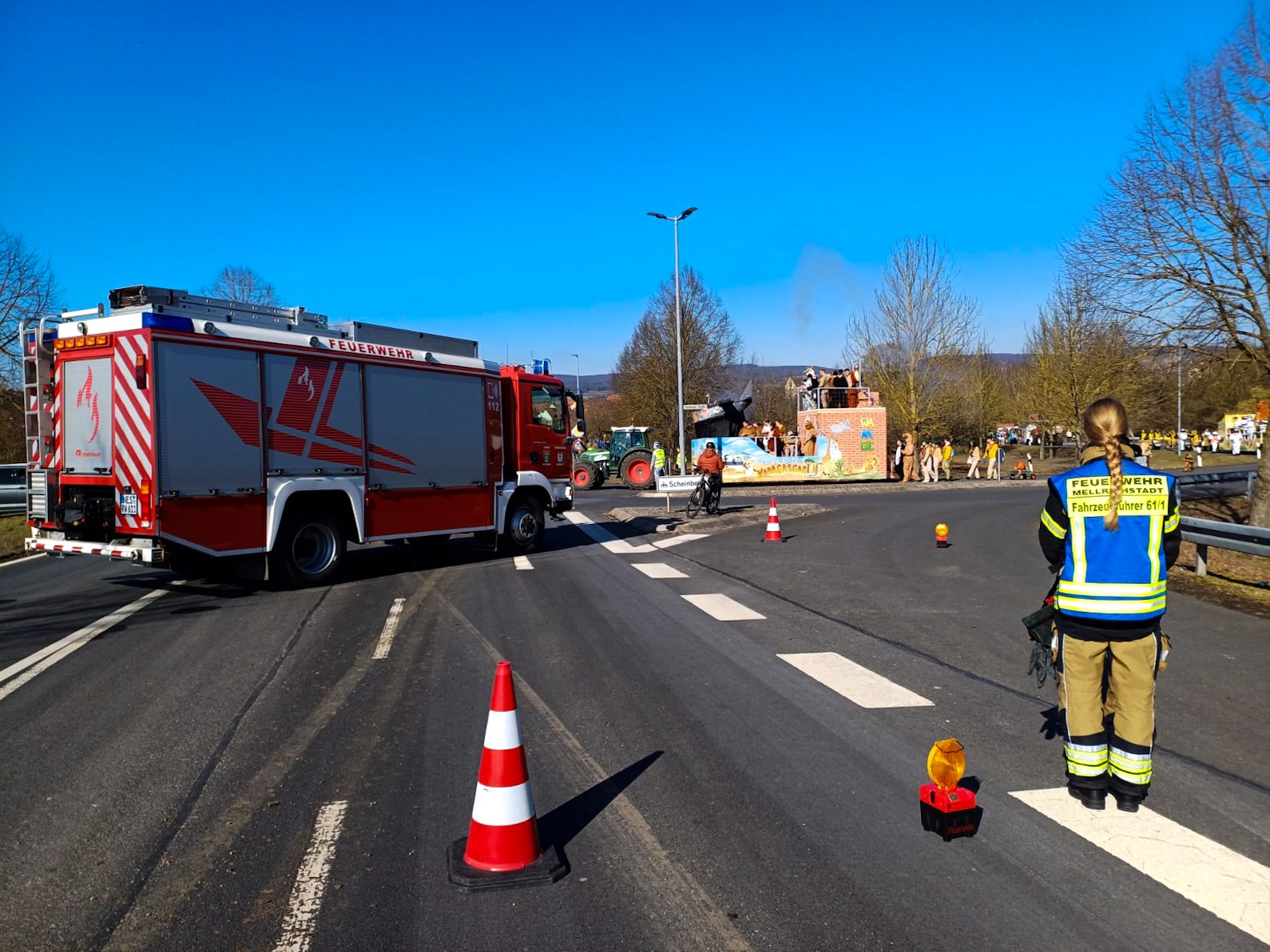Nach dem gemeinsamen Mittagessen aller Hilfsorganisationen bei uns im Feuerwehrgerätehaus, sicherten wir gemeinsam den Faschingsumzug der MKG Mellrichstadt ab. Es wurde eine Einsatzleitung aufgebaut und alle Zufahrtsstraßen abgesperrt. Der Umzug verlief ohne größere Vorkommnisse.