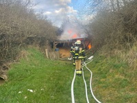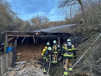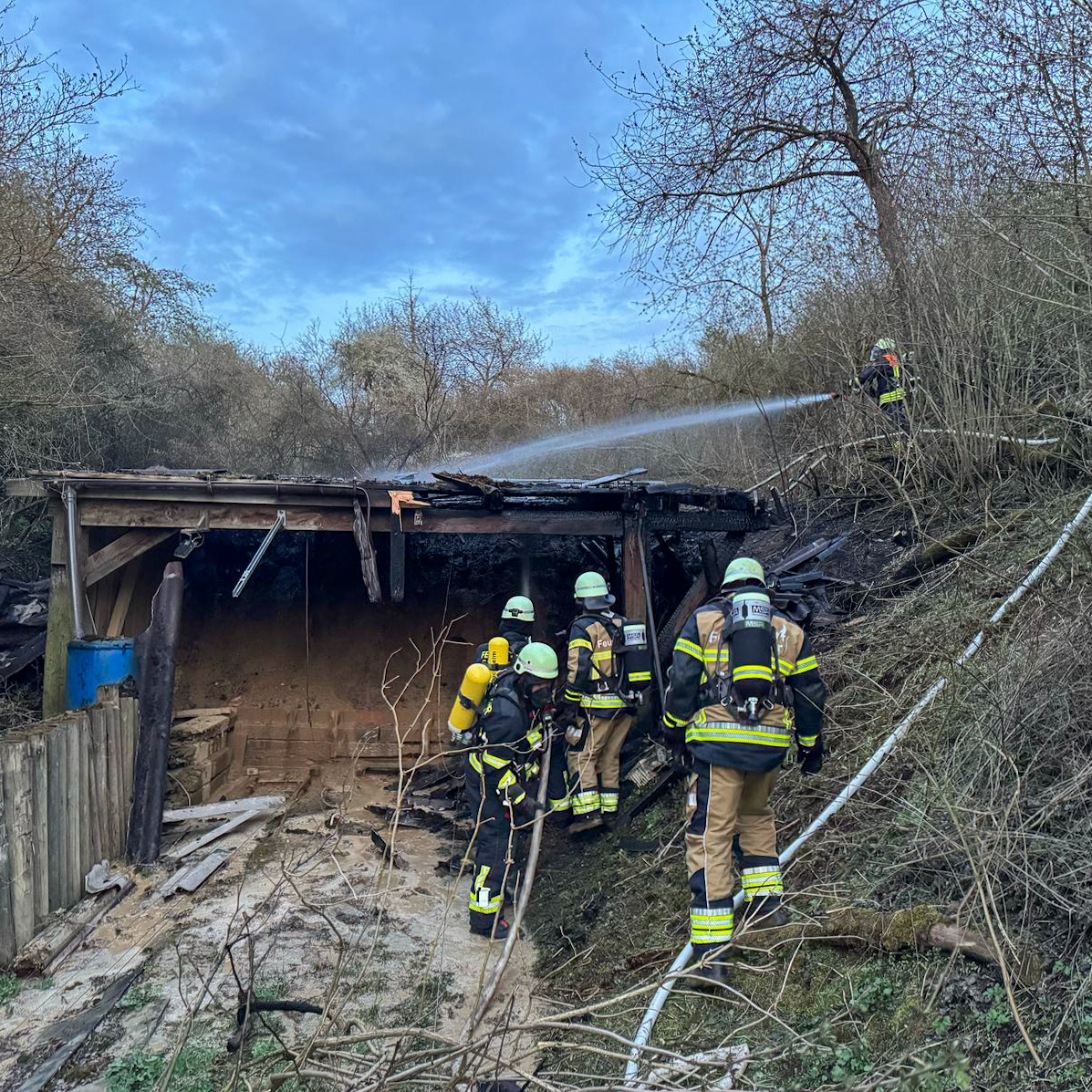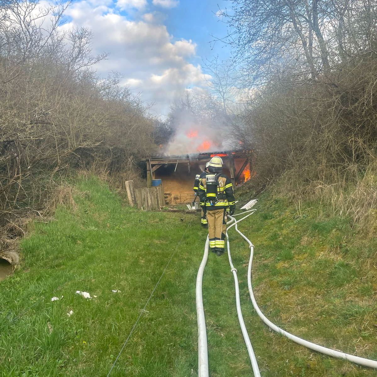 Wir wurden zu einem gemeldeten Zimmerbrand alarmiert. Vor Ort brannte ein Kugelfang auf einer Schießbahn. Die Löscharbeiten wurden durch dichte Hecken und seitliche Wälle erschwert und zogen sich wegen der schlechten Zugänglichkeit und Einsturzgefahr in die Länge.