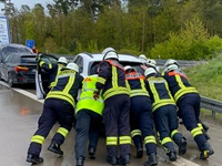 Noch auf Anfahrt zum Gerätehaus erhöhte sich das Stichwort von THL 1 auf THL 3. Wir sicherten die Einsatzstelle ab und unterstützten die Verkehrslenkungsmaßnahmen.