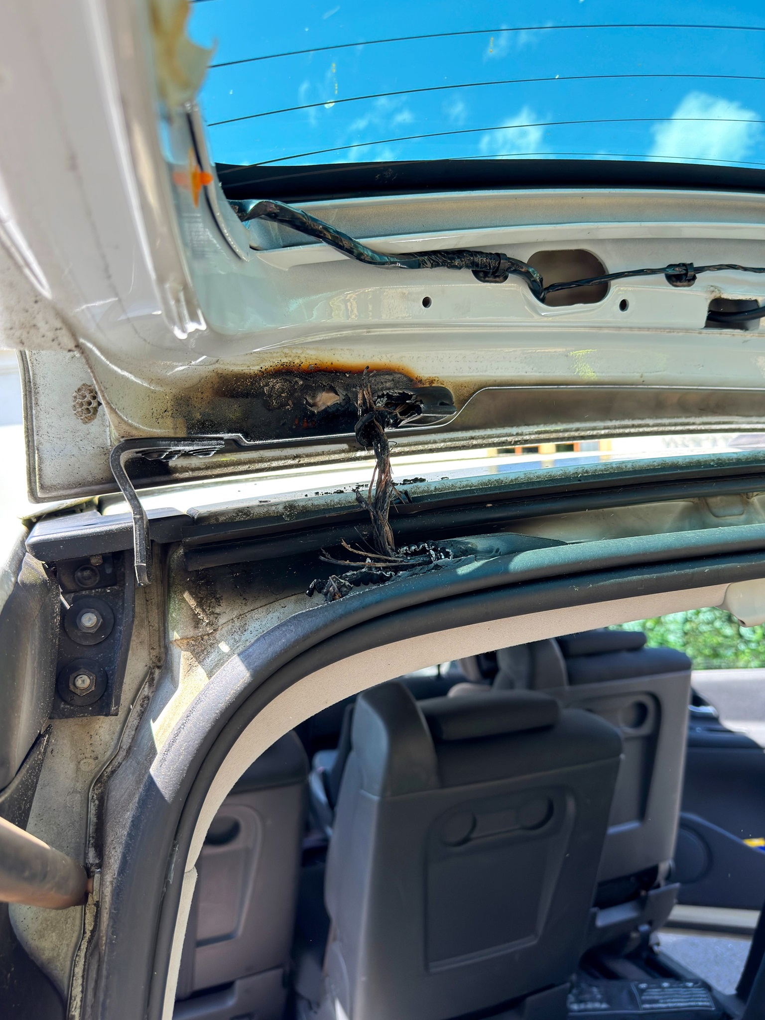 Es kam zu einem Kabelbrand im Bereich des Kofferraums bei einem PKW. Wir entfernten die Innenverkleidung, um die Notentriegelung betätigen und die Schadstelle kontrollieren zu können. Wir stellten fest, dass unsererseits kein weiteres Eingreifen erforderlich war.