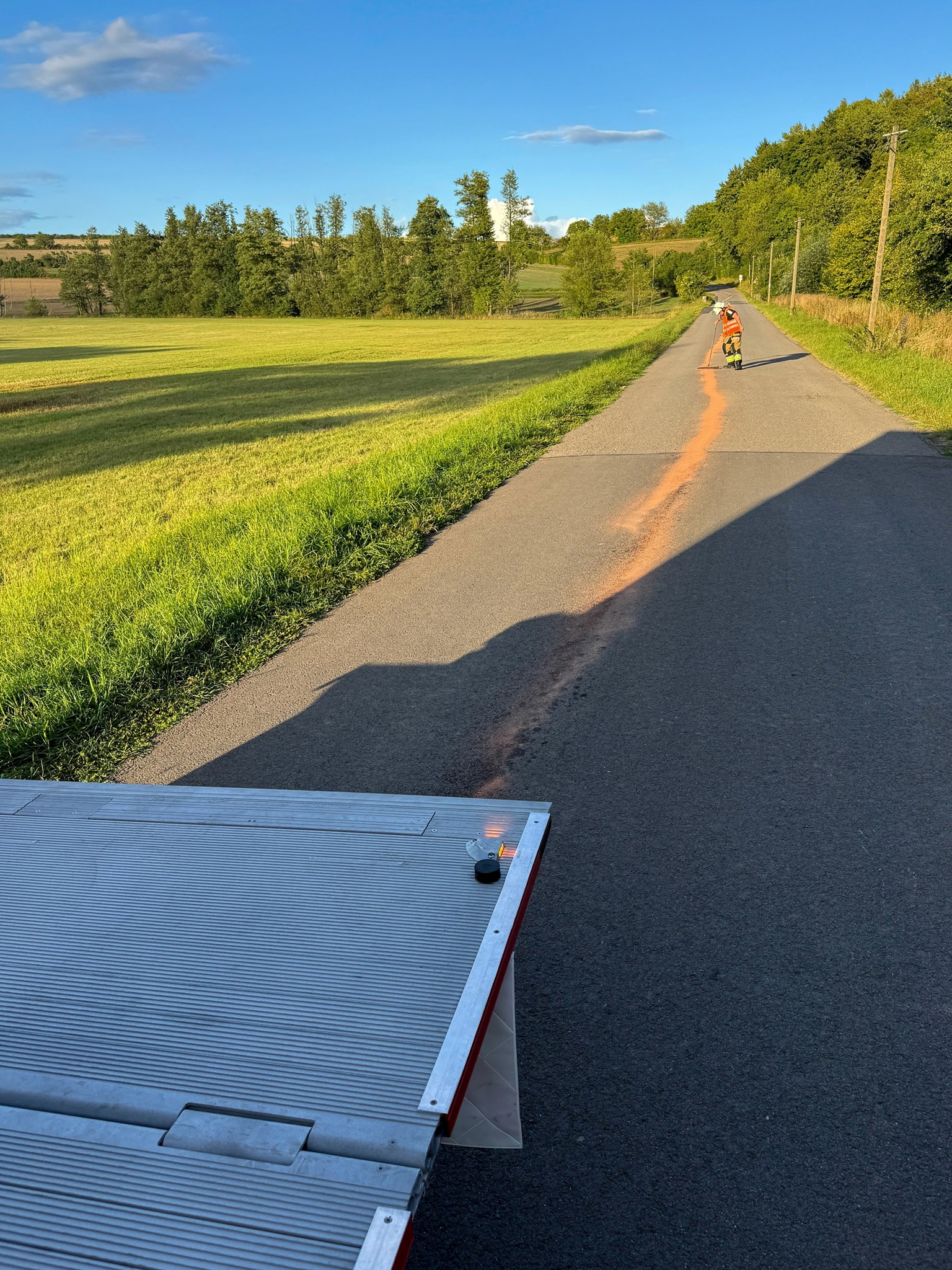 Eine Ölspur zog sich mehrere hundert Meter durch den Malbachweg. Wir banden die Betriebsstoffe ab.