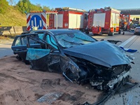 Der Fahrer konnte von Ersthelfern aus dem Auto befreit werden. Er wurde schwer verletzt ins Krankenhaus gefahren.