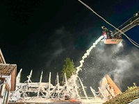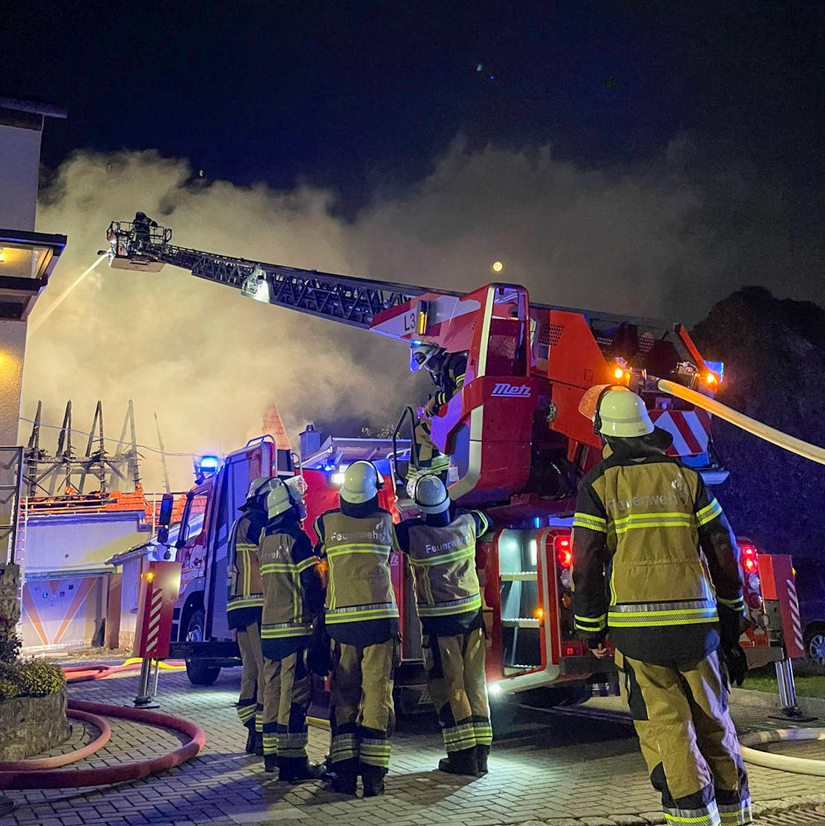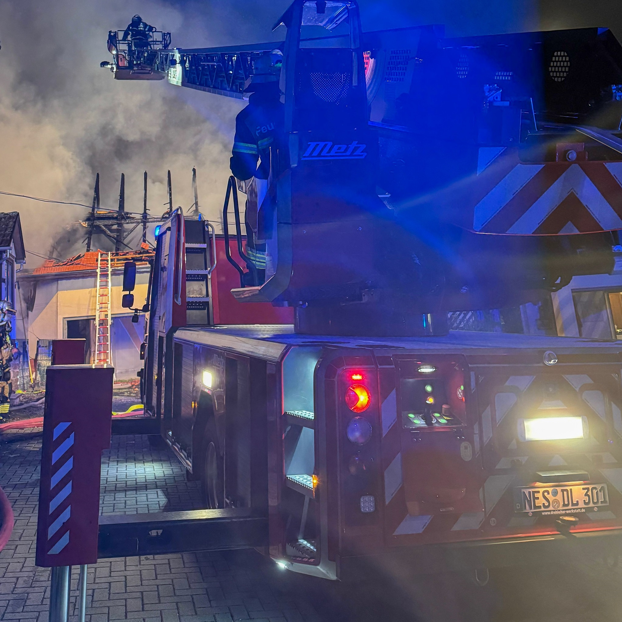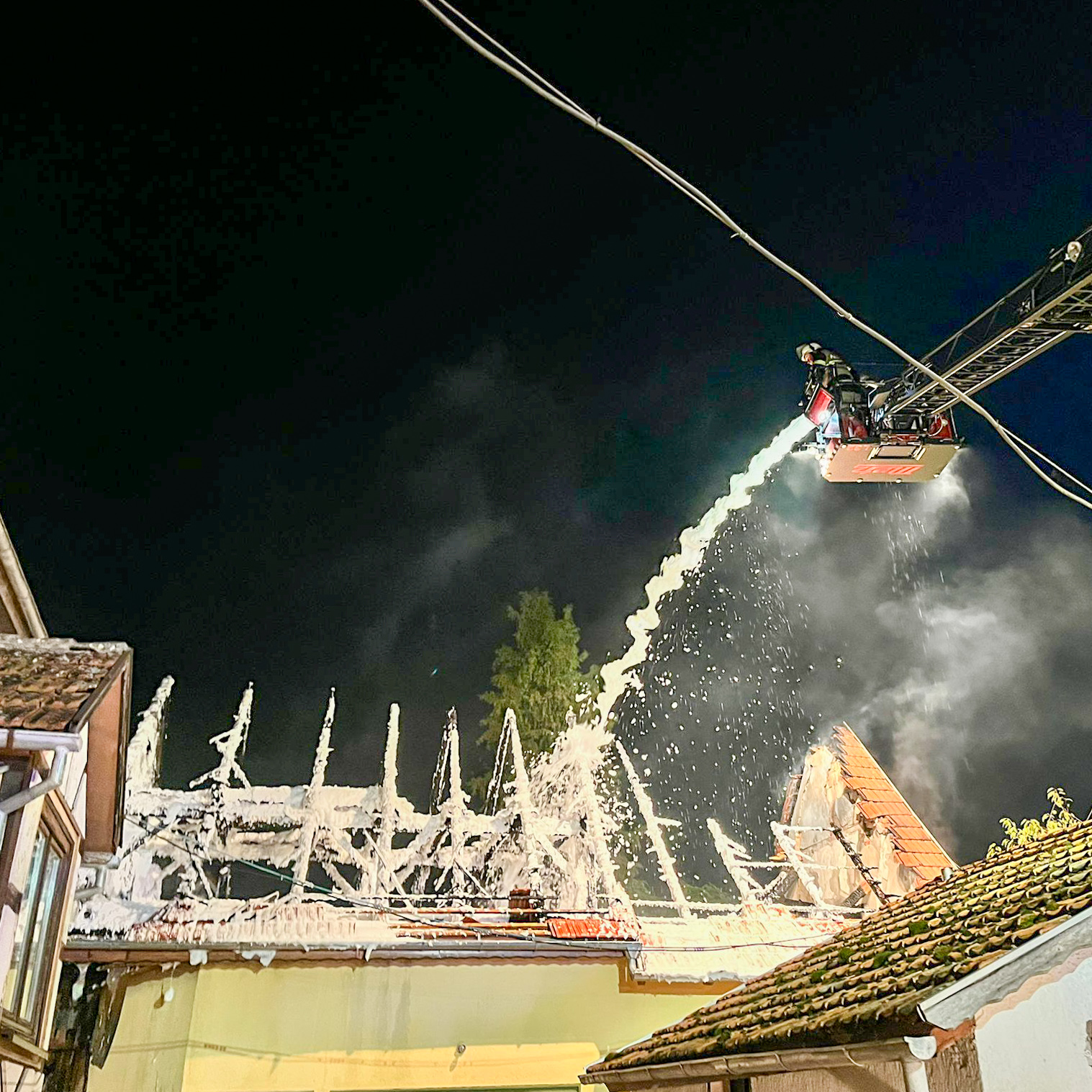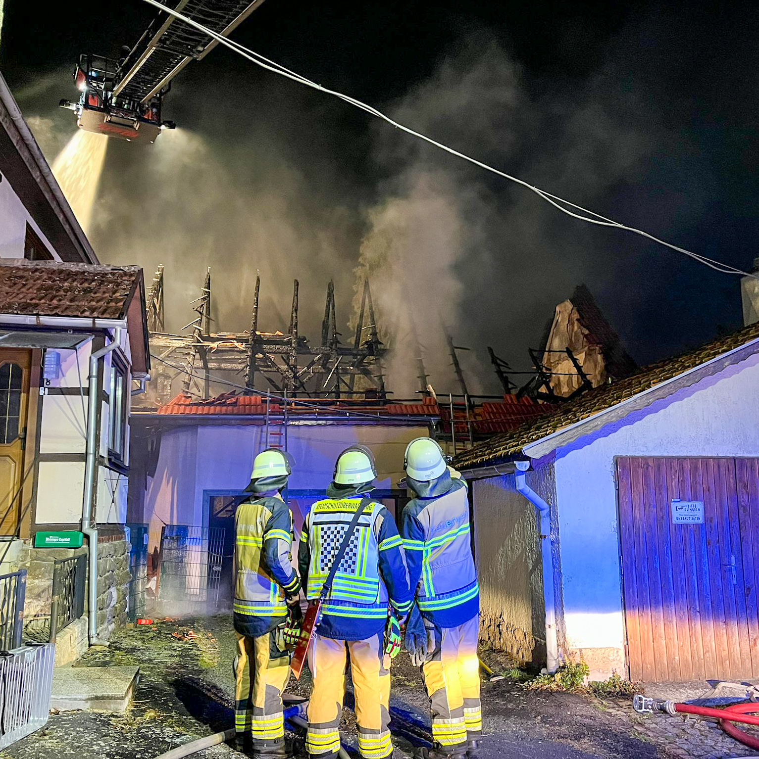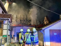 Es stand eine Scheune in Vollbrand. Um ein Ausbreiten des Feuers auf angrenzende Gebäude zu verhindern, wurden mehrere Löschangriffe auch mittels Drehleiter aufgebaut. Nachdem das Feuer unter Kontrolle war, wurde ein Schaumteppich gelegt, um die restlichen Glutnester zu ersticken. Die örtlichen Feuerwehren stellten bis in die Morgenstunden eine Brandwache.