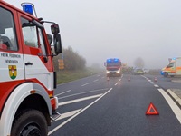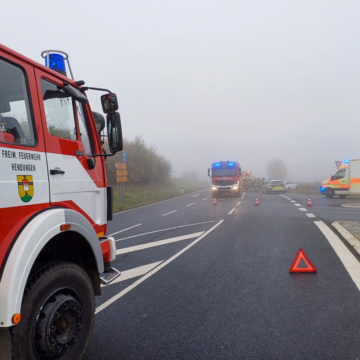 Es ereignete sich ein Verkehrsunfall mit zwei PKW im Kreuzungsbereich bei starkem Nebel. Gemeinsam mit der Feuerwehr Hendungen wurde die Einsatzstelle abgesichert.