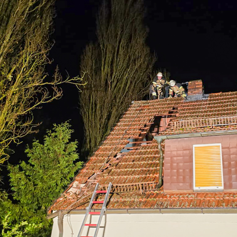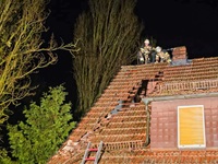 Ein Hausdach wurde von einem umgestürzten Baum beschädigt. Gemeinsam mit den anwesenden Feuerwehren deckten wir den betroffenen Bereich mit einer Plane ab.