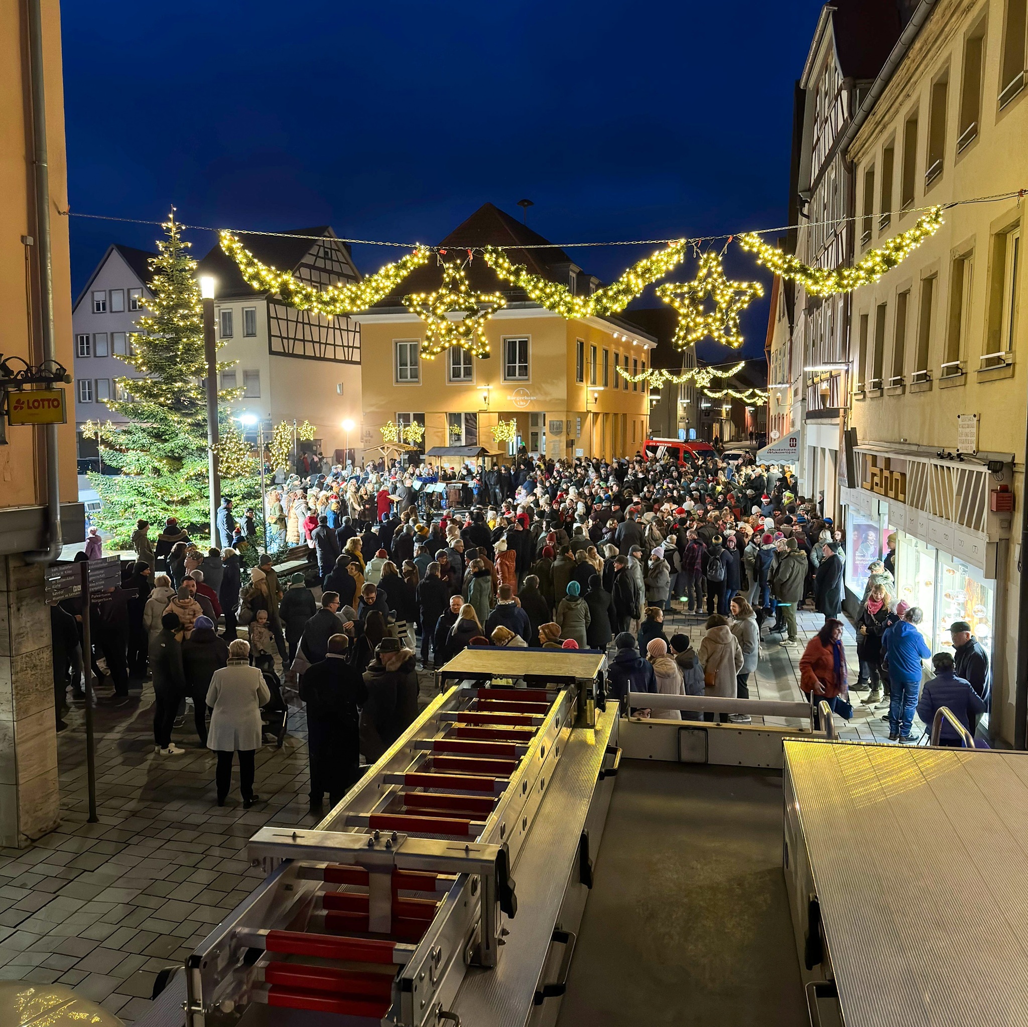 Wir sorgten beim jährlichen Weihnachtssingen auf dem Marktplatz für Licht und sicherten die Veranstaltung verkehrstechnisch ab.