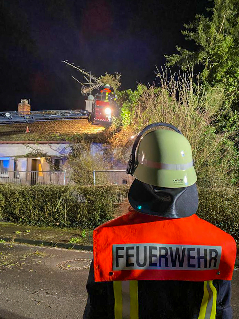 Die Einsatzstelle wurde abgesperrt, ein Trupp im Drehleiterkorb hat den Baum mithilfe einer Kettensäge zerteilt. Der Rüstwagen hat anschließend den Stamm mithilfe der Seilwinde vom Dach entfernt.