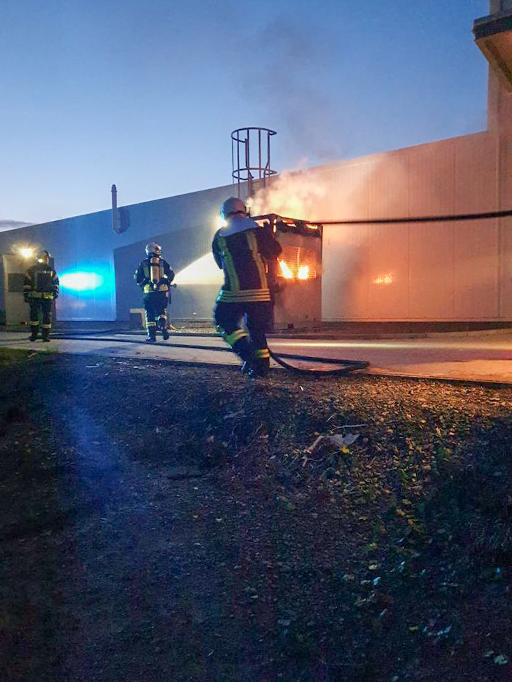 Eine technische Einrichtung im Außenbereich eines Industriegebäudes fing Feuer. Durch schnelles Eingreifen der ersteintreffenden Kräfte, konnte ein Übergriff auf die angrenzenden Hallen vermieden werden.