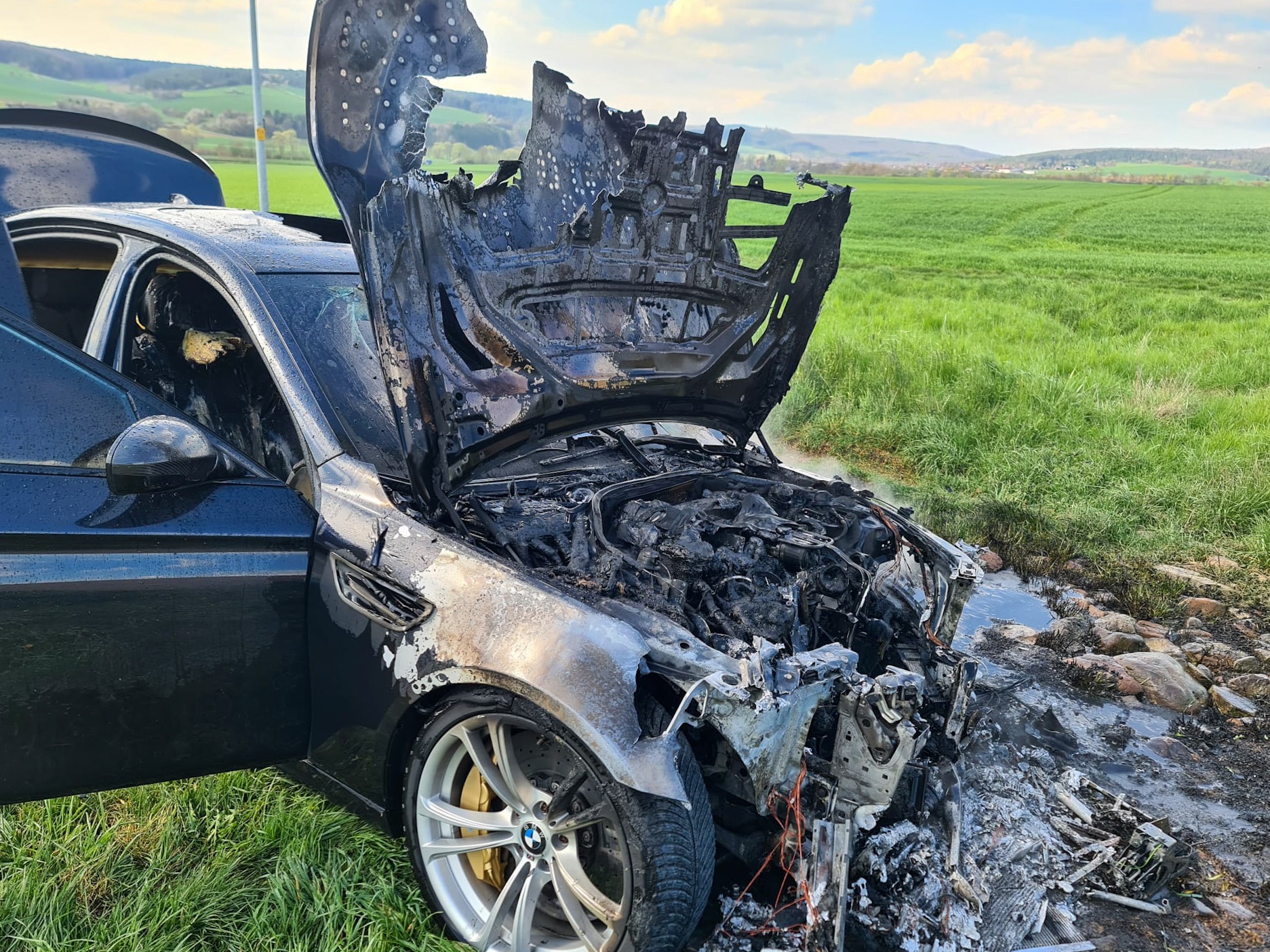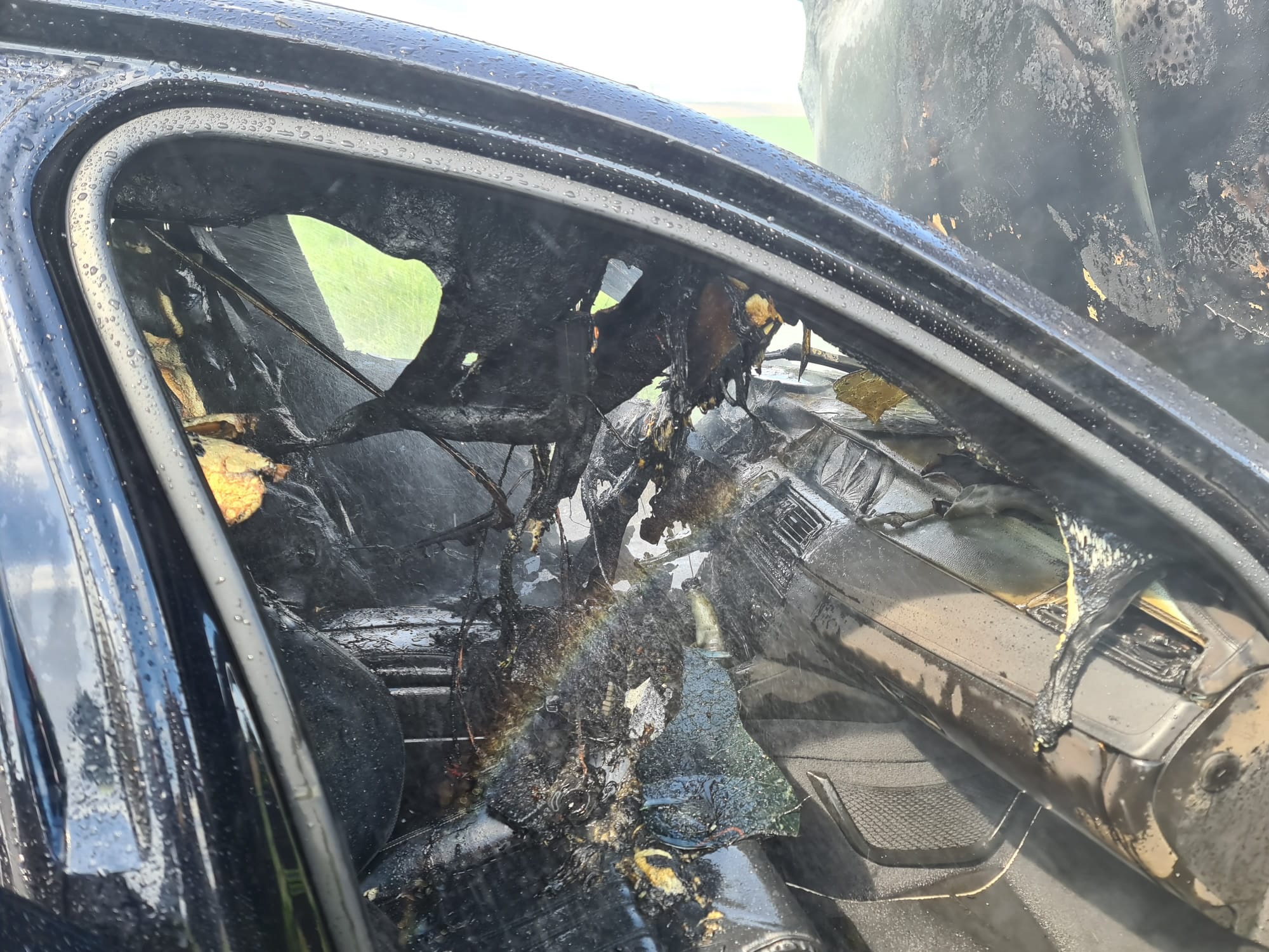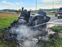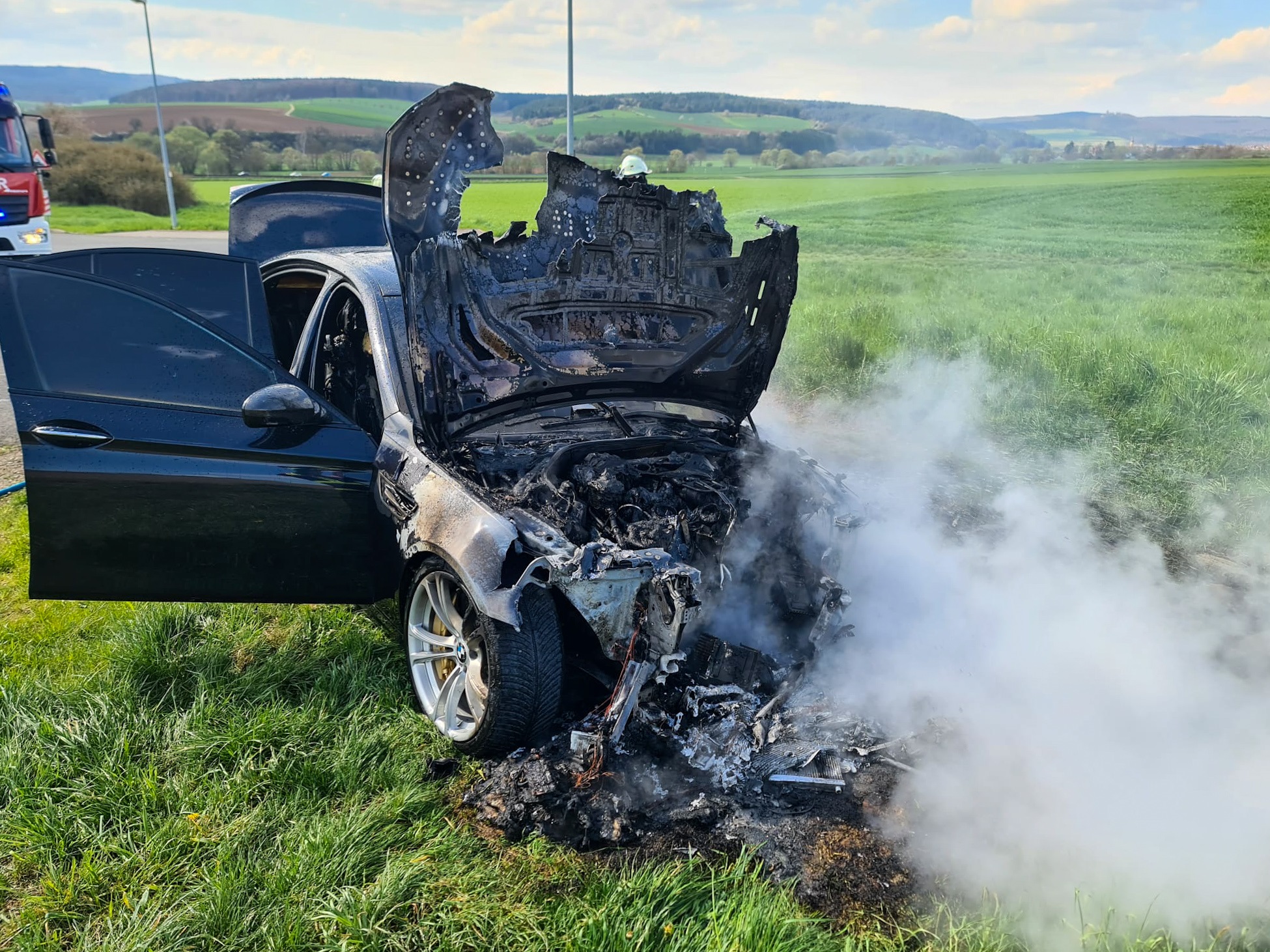 Der PKW stand bei unserer Ankunft bereits in Vollbrand. Wir löschten diesen unter Atemschutz per Schnellangriff.