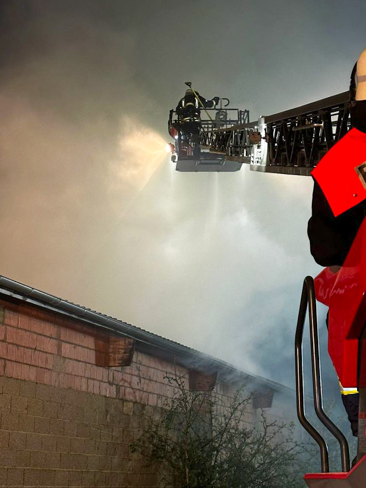 Bei Ankunft der Feuerwehren stand die Scheune bereits in Vollbrand. Das Feuer wurde von mehreren Seiten gleichzeitig bekämpft.