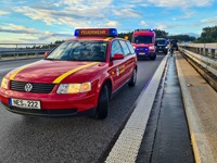 Wir sicherten die Einsatzstelle ab und befreiten in Kooperation mit dem THW die Fahrbahn von Fahrzeugteilen.