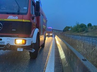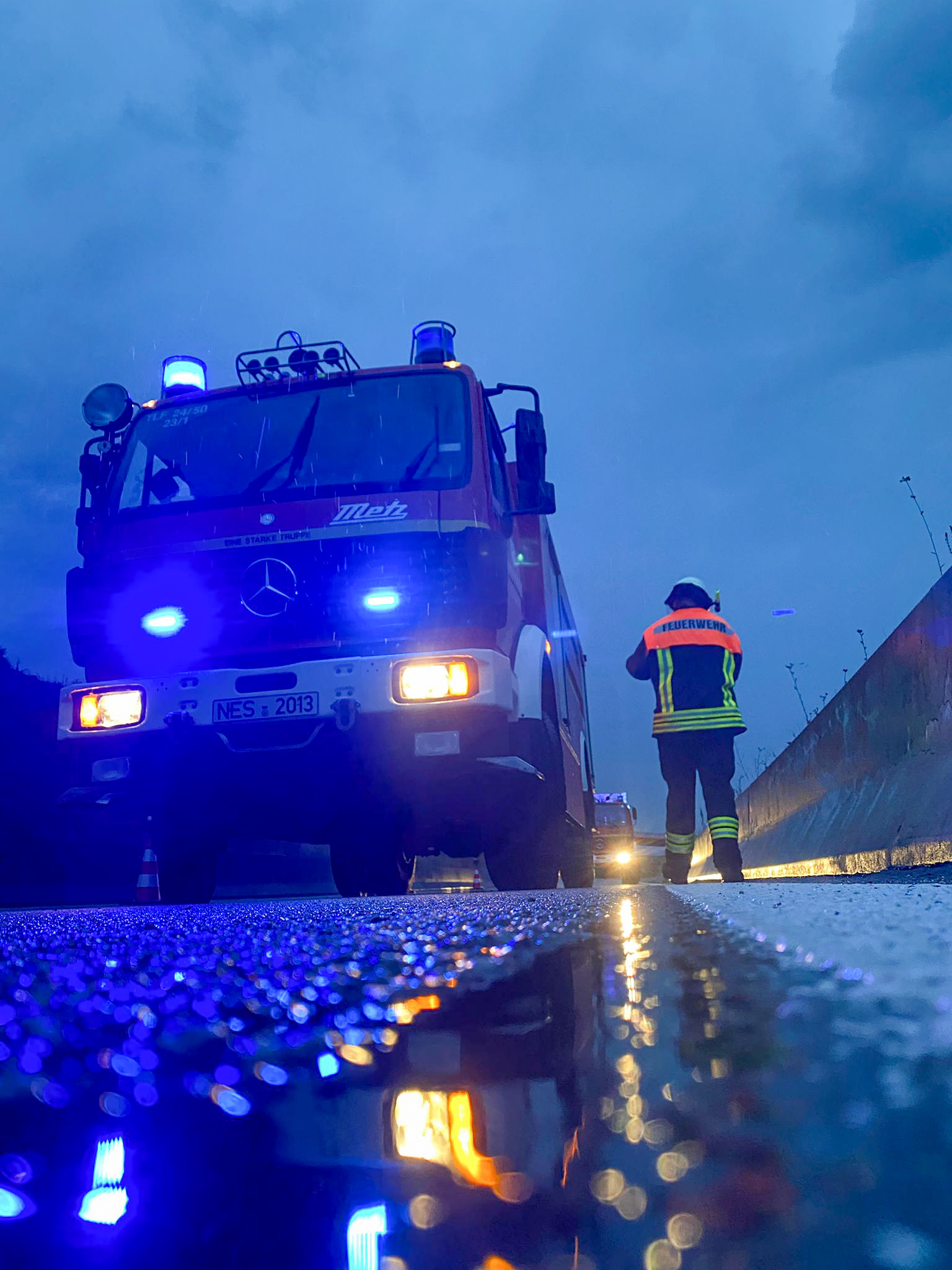 Kaum waren wir wieder an der Wache angekommen, ertönten unsere Funkmeldeempfänger erneut. Ein PKW ist auf nasser Fahrbahn ins Schleudern geraten und in die Leitplanken gestoßen. Mehrere Personen wurden dadurch verletzt. Wir sicherten die Unfallstelle ab, übergaben die Patienten an den Rettungsdienst und warteten auf den Abschleppdienst.