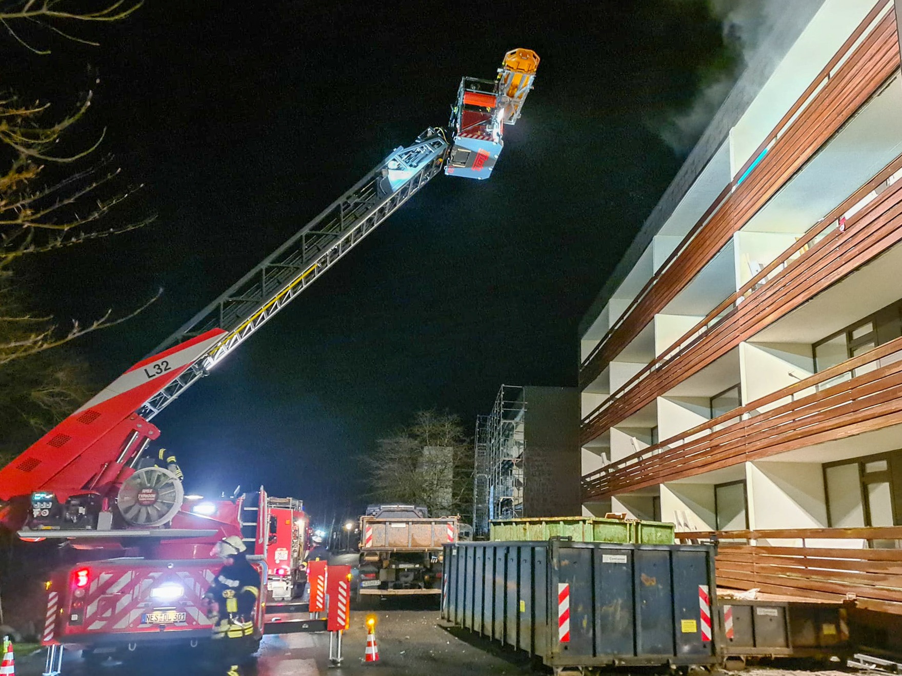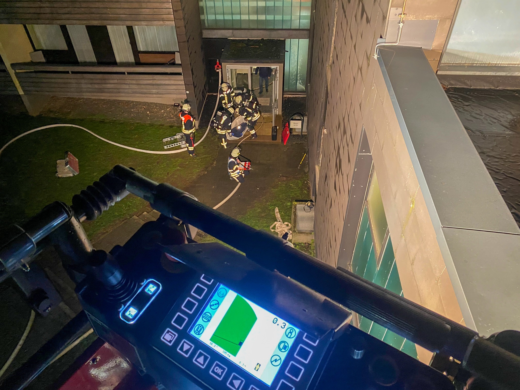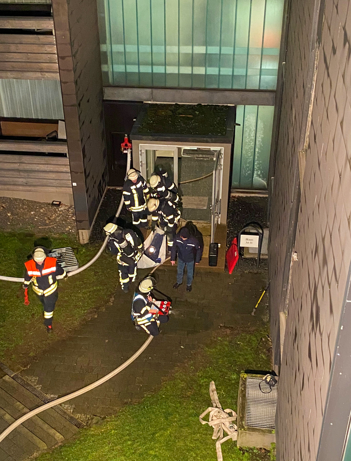 Anleitermöglichkeiten für die Drehleiter zu finden oder das Objekt von innen mit diversen Szenarien zu beüben war das Ziel des Abends.