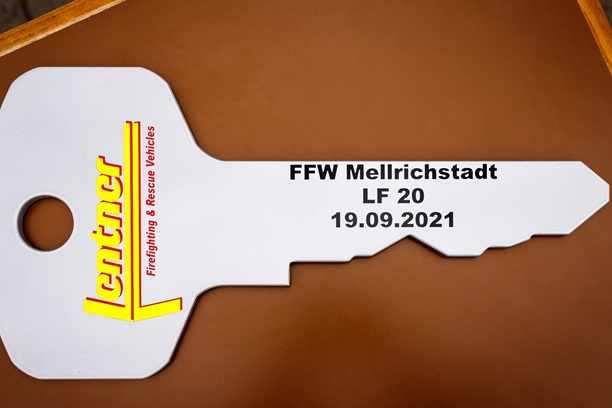 Im Anschluss daran wurde das knapp 400.000€ teure Fahrzeug, welches ein LF 8 aus dem Jahr 1972 ersetzt, vom 1. Bürgermeister Michael Kraus offiziell an die Feuerwehr Mellrichstadt übergeben.