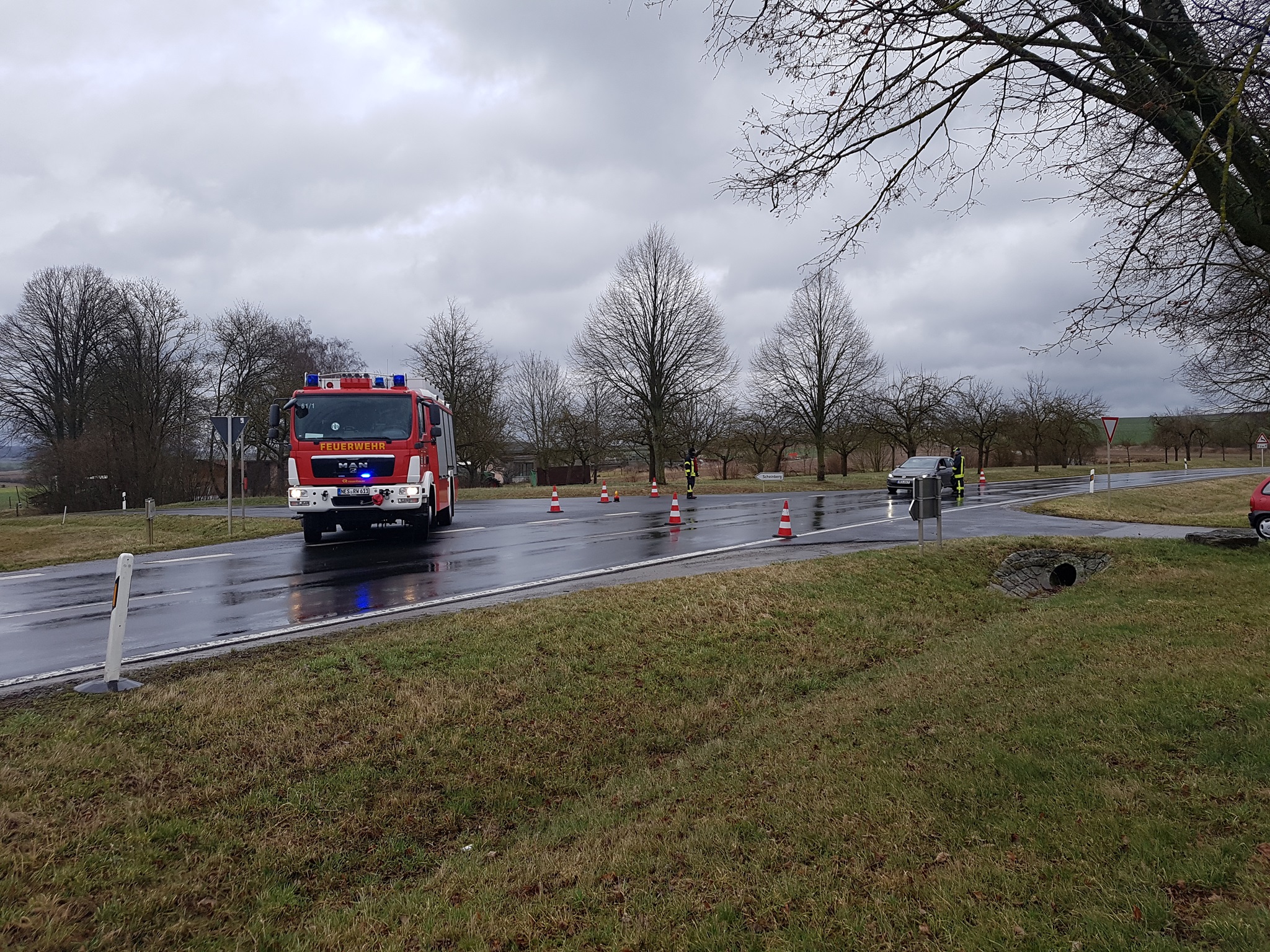 3 Kameraden sperren mithilfe unseres Rüstwagens am Scheinbergweg ab