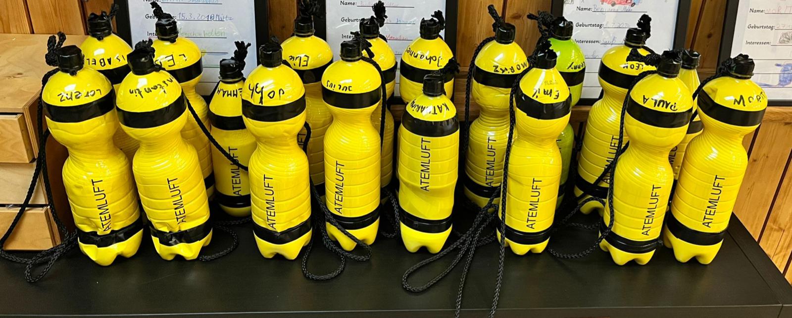 Beim letzten Treffen haben unsere "Feuerfüchse" das Atemschutzzentrum in Salz besucht. Hierfür haben sie im Voraus Atemschutzflaschen selbst gebastelt.