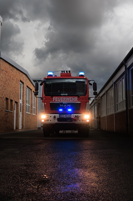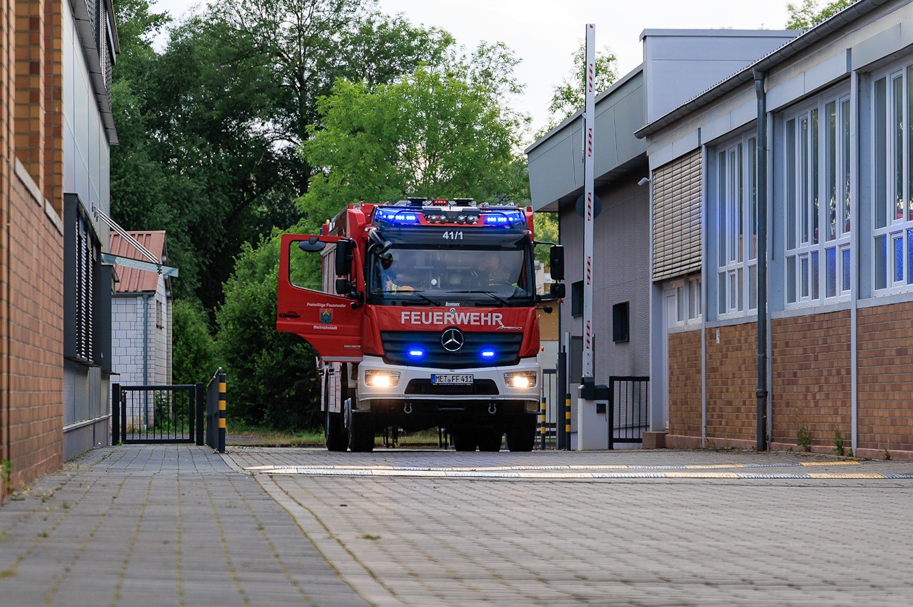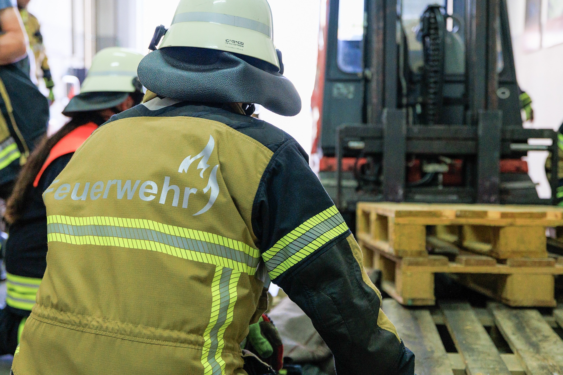 Angenommen wurde ein Unfall im betrieblichen Umfeld – eine Person war unter einem Gabelstapler eingeklemmt. Nach der Erkundung wurde das Fahrzeug gesichert, Gefahrenstellen beseitigt und die verletzten Personen fachgerecht gerettet.